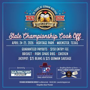 Register for the BBQ Cook-off at jwworksllc@gmail.com or 940-902-1655